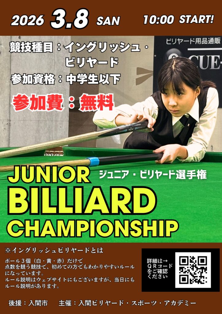 | 会場 | 入間ビリヤード・スポーツ・アカデミー |